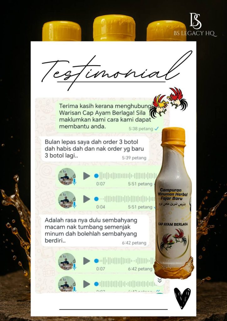 Alhamduillah Ramai Yang Dah Sihat Setelah Menggunakan Minuman Tonik Cap Ayam Berlaga Turun Temurun Sejak Tahun 1972