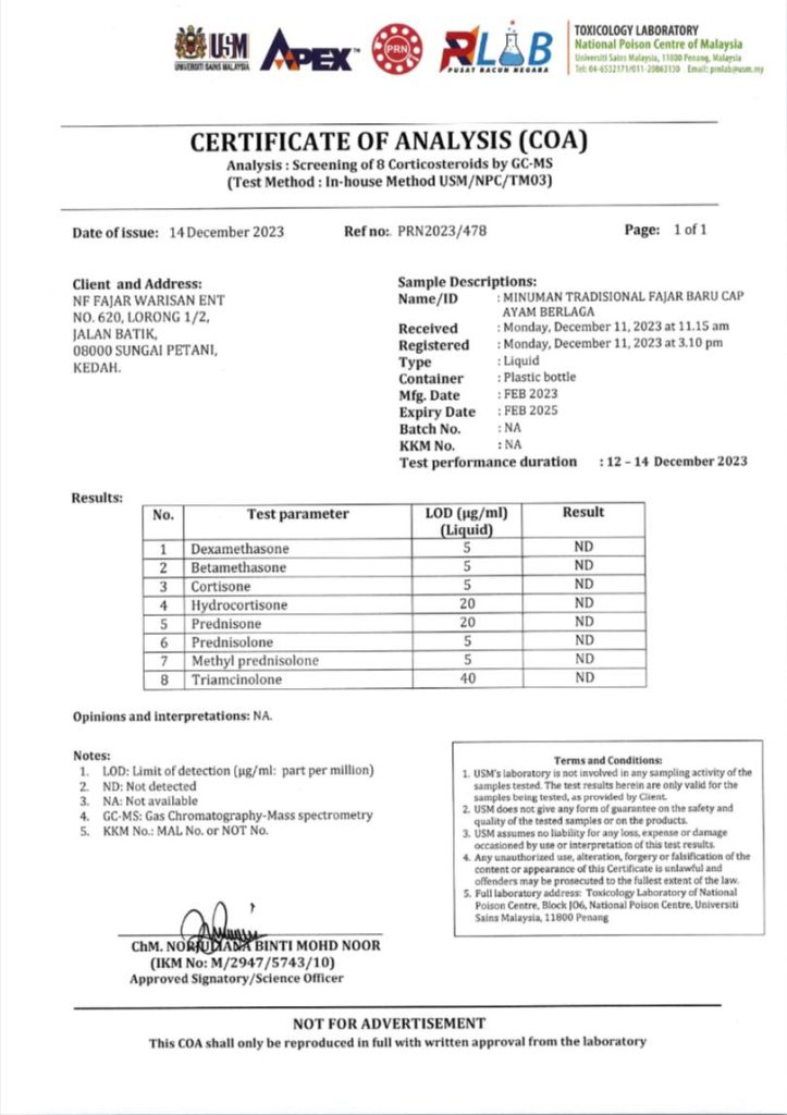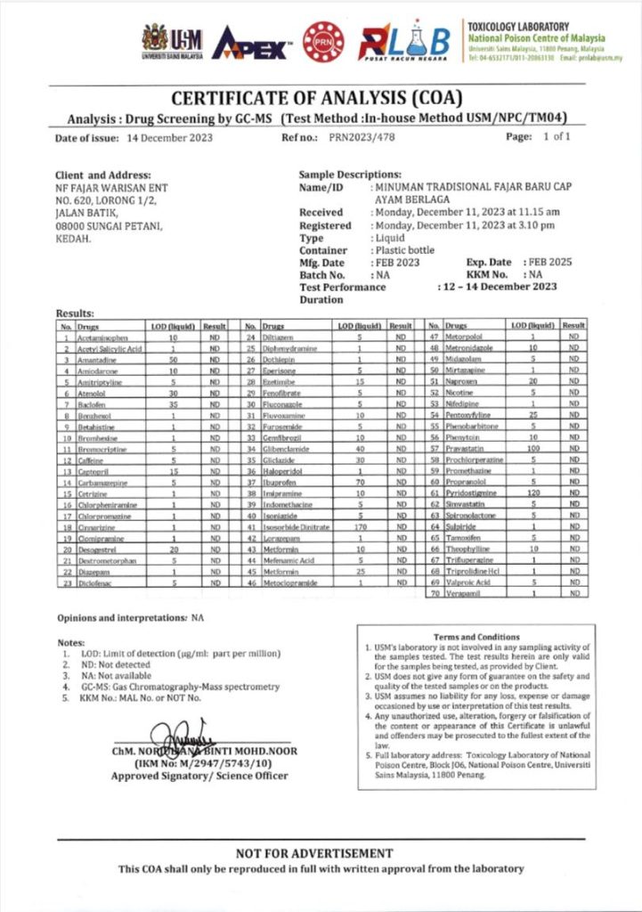 TONIK AYAM BERLAGA TERDIRI DARIPADA PURE EXTRACT 100% BAHAN SEMULAJADI Dan Dimasak Sendiri Dengan 25 Jenis Herba Akar Kayu Daripada Arwah Ayah Saya Sehingga Sekarang .
